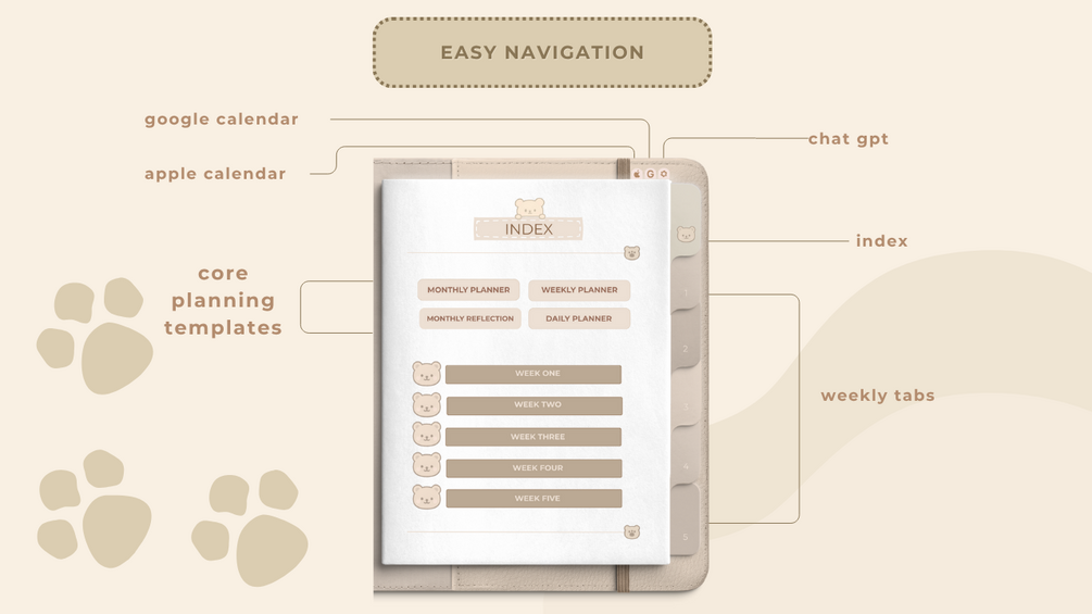 Stay cool, cozy, and organized with this minimal Polar Bear Edition of your favorite bear-themed digital planner! Designed to evoke the calm of snowy mornings and polar charm, this planner blends soft white tones with adorable bear details and smart, hyperlinked functionality.